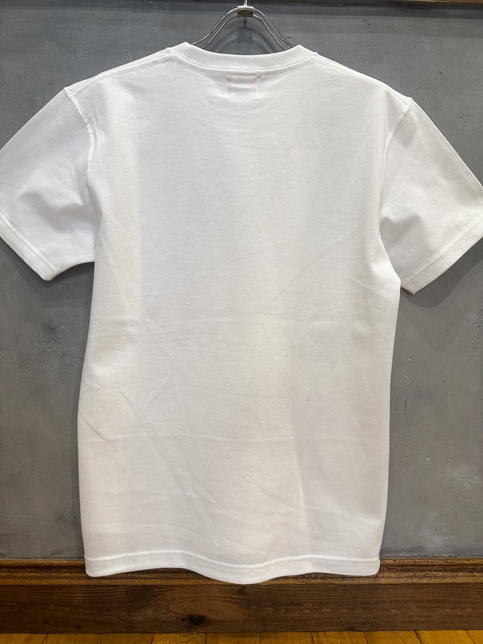 変則な当SHOPロゴが胸にワンポイントプリントされたTシャツ。