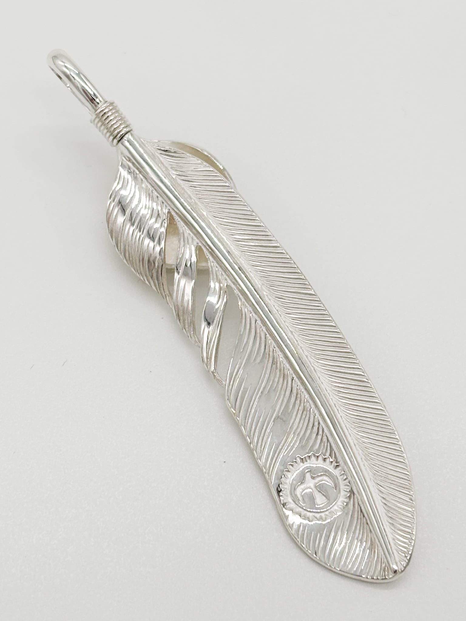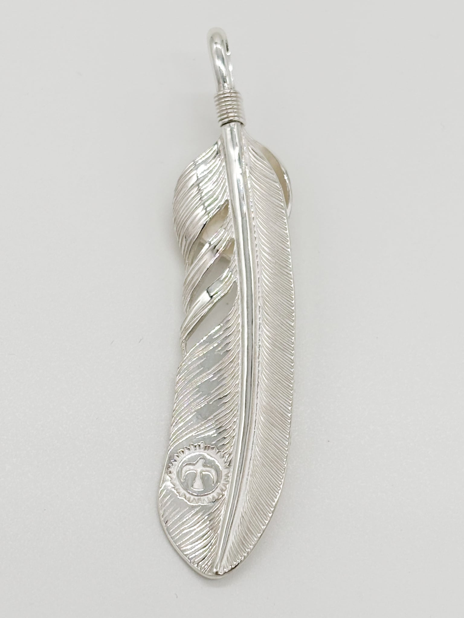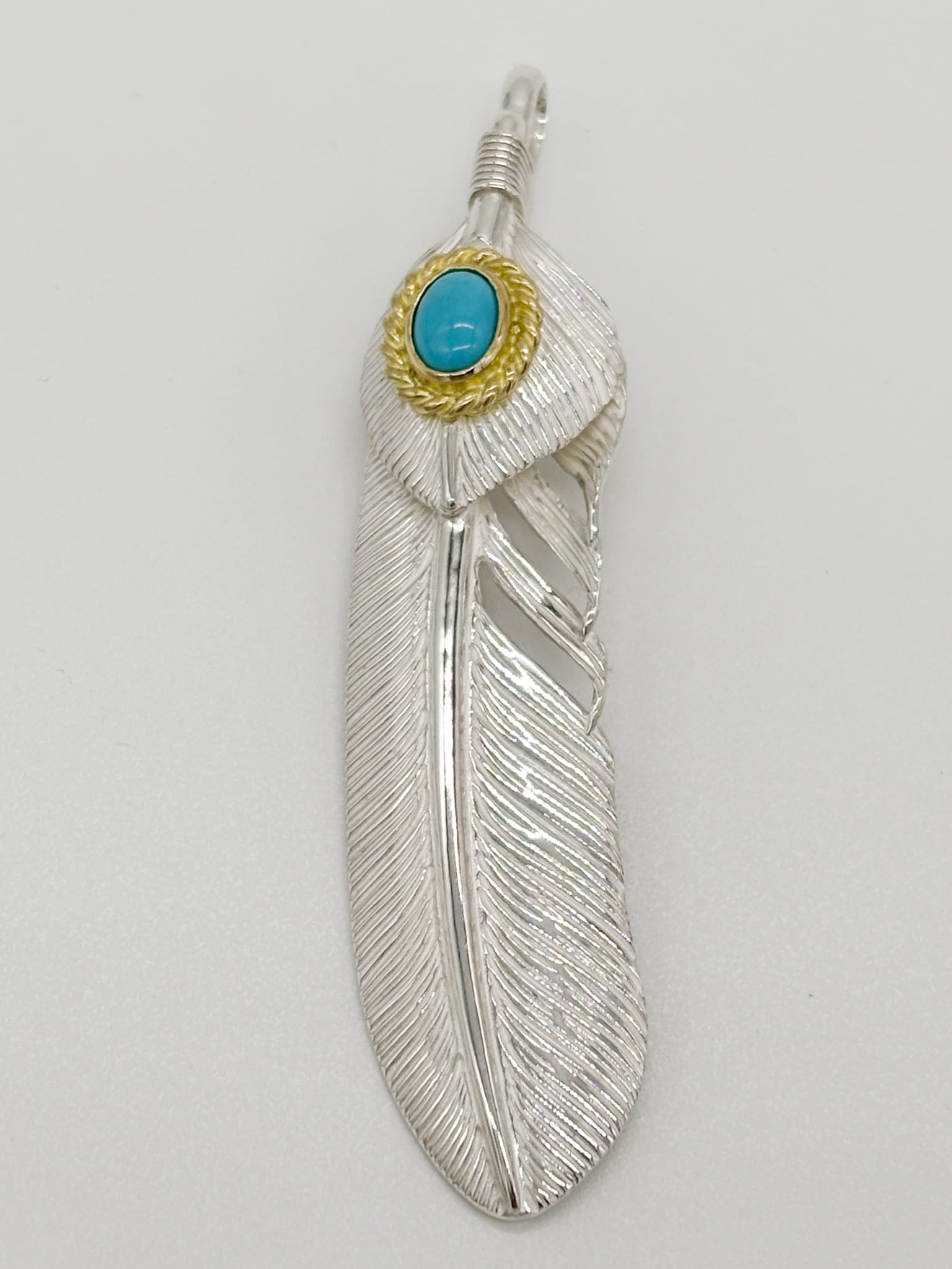 ハートフェザーの上に爽やかなターコイズが目を引く大フェザー。