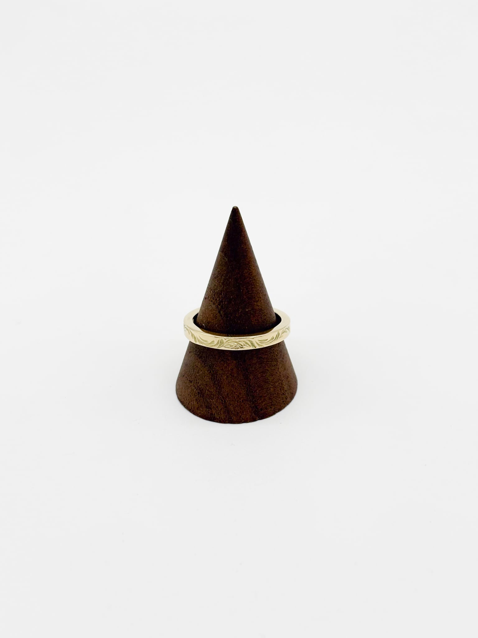 STUDIO T&Y 3mm幅手彫り唐草彫り平打ちリング K18 16号