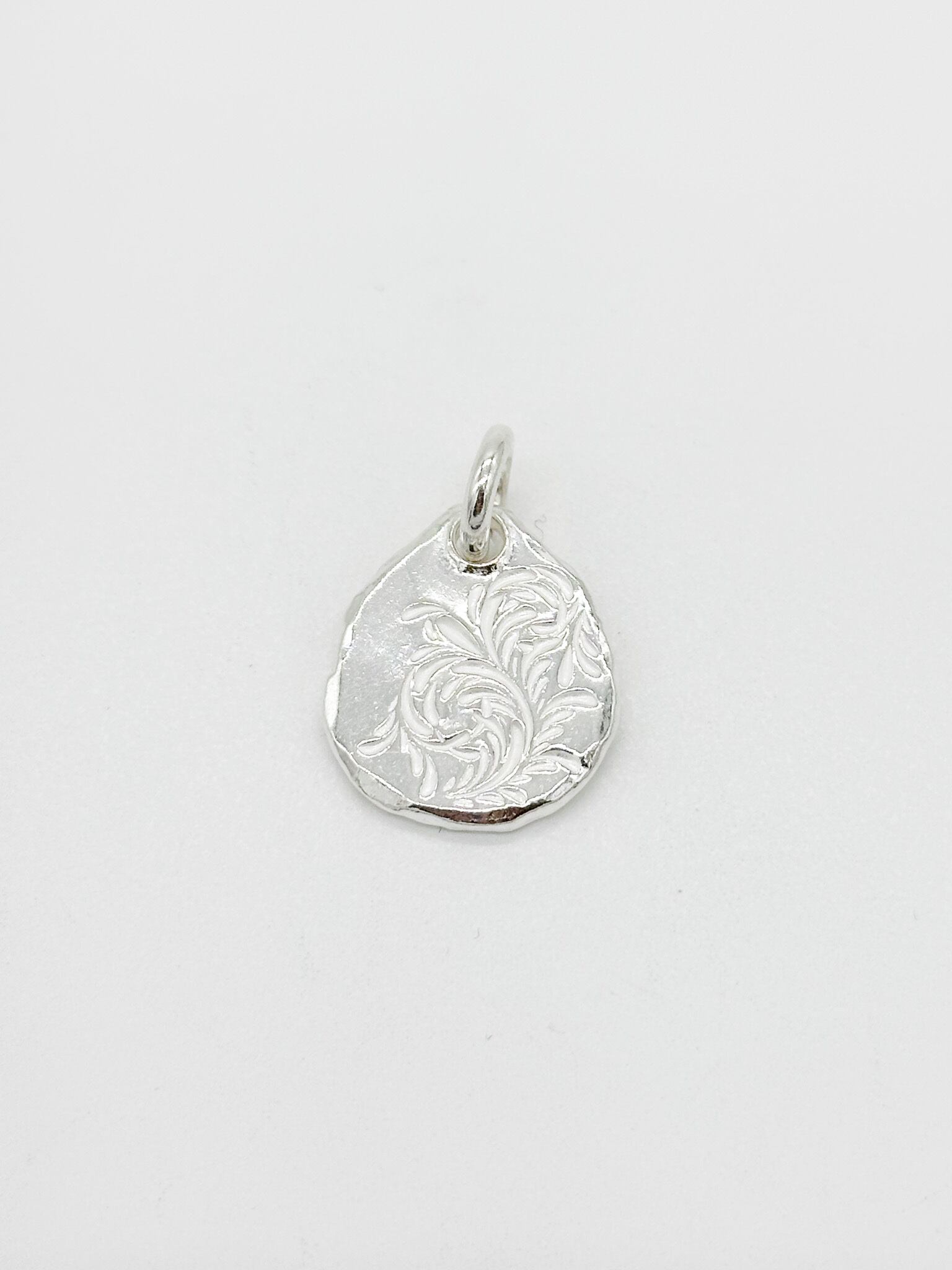 小ぶりなネックレスに最適なサイズ。シルバーチャームとしてフェザーなどとコンビネーションさせても良い