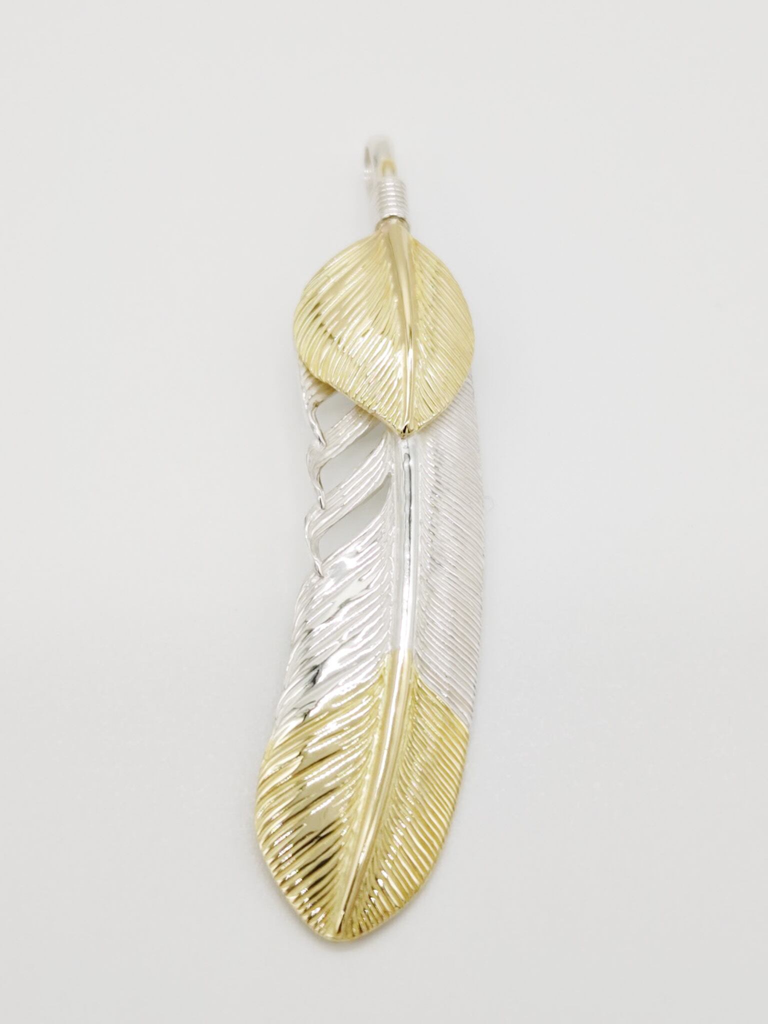 羽先がゴールド素材になっている通称先金フェザーに銀コイルで金ハートフェザーをあしらった贅沢な一枚