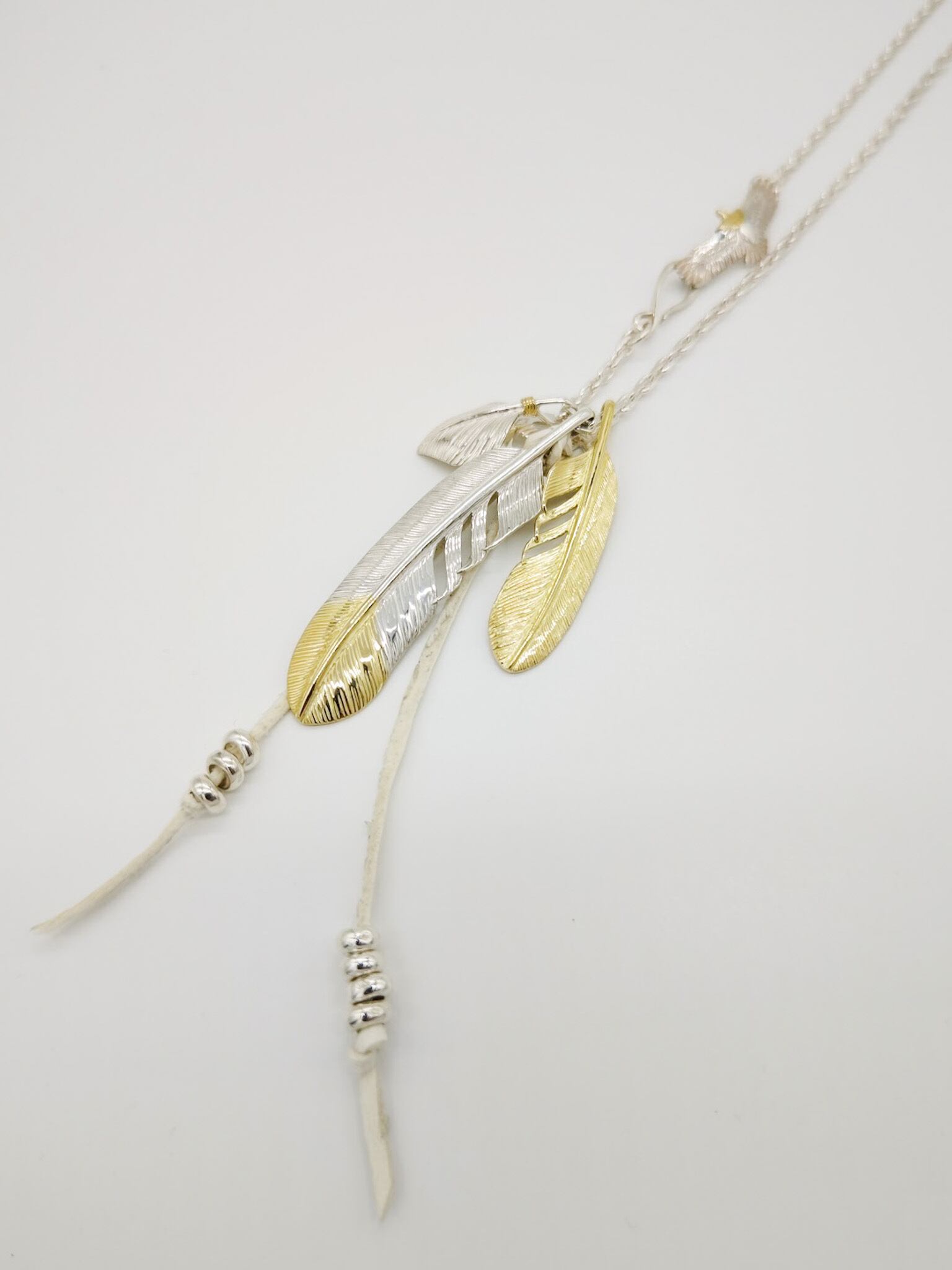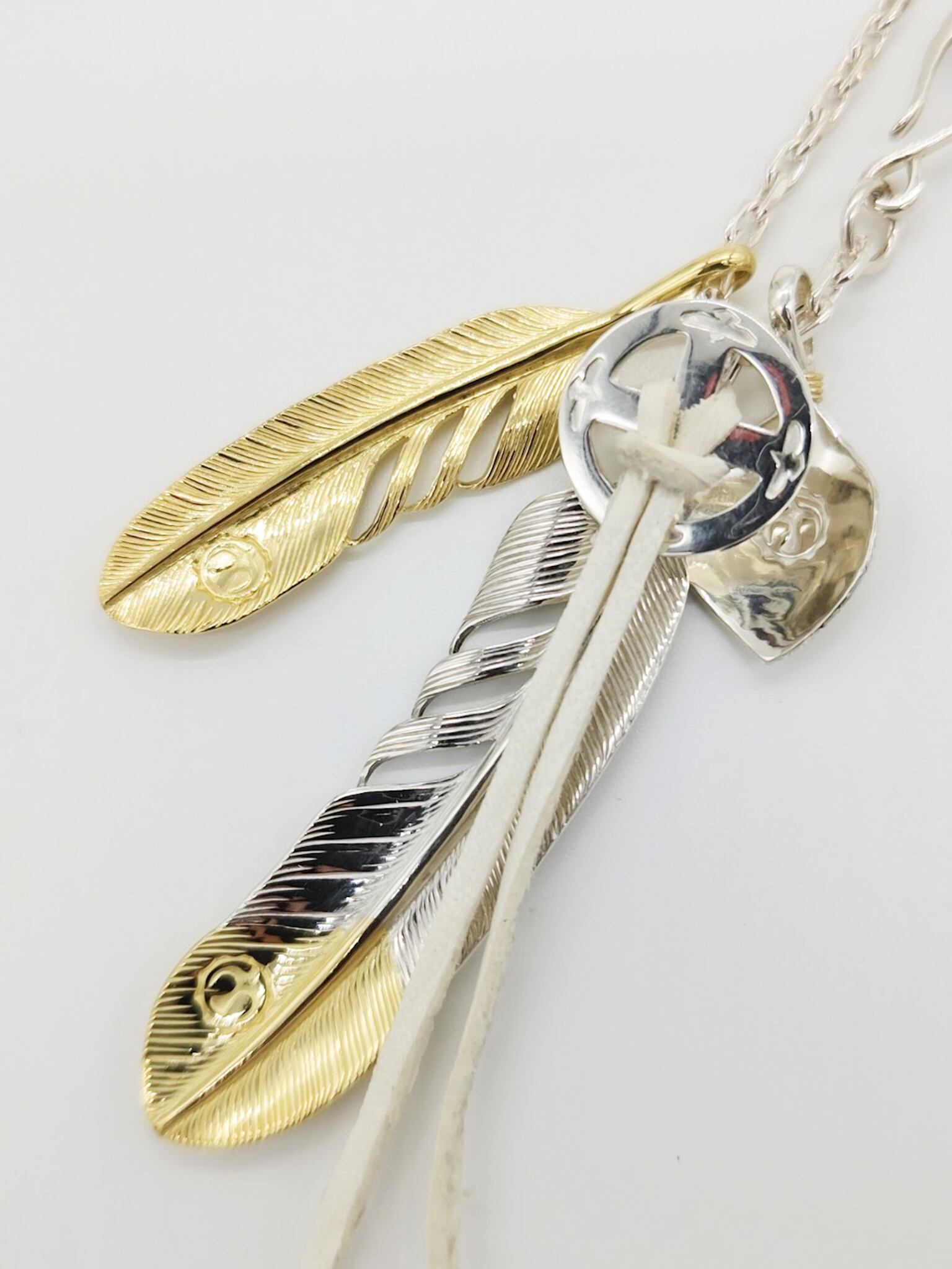 様々な大きさのフェザーと多めにGOLDを配置したコーディネート。