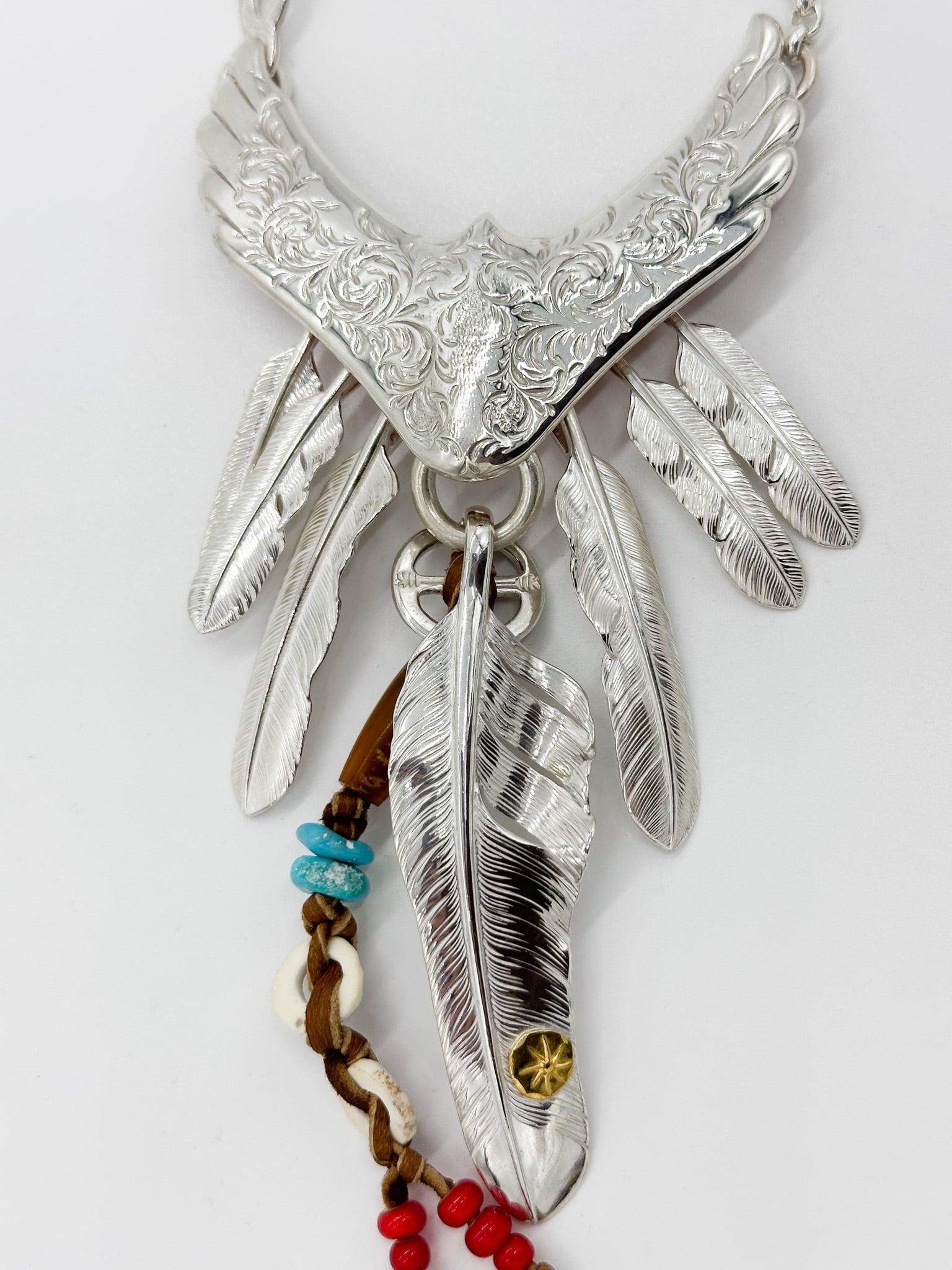 唐草大イーグルをメインに。そしてフェザーも惜しげもなく装着した豪華なカスタムネックレス。