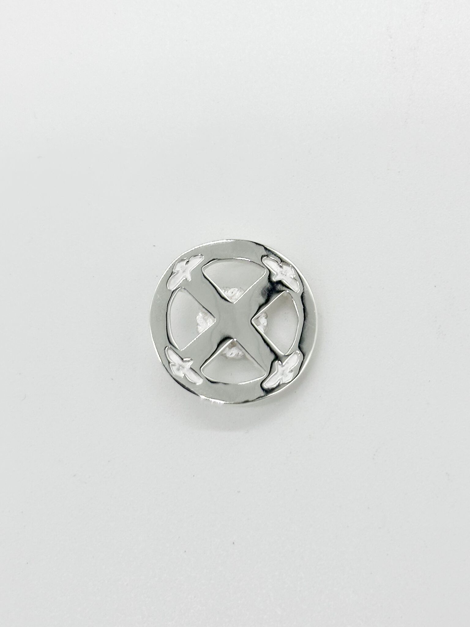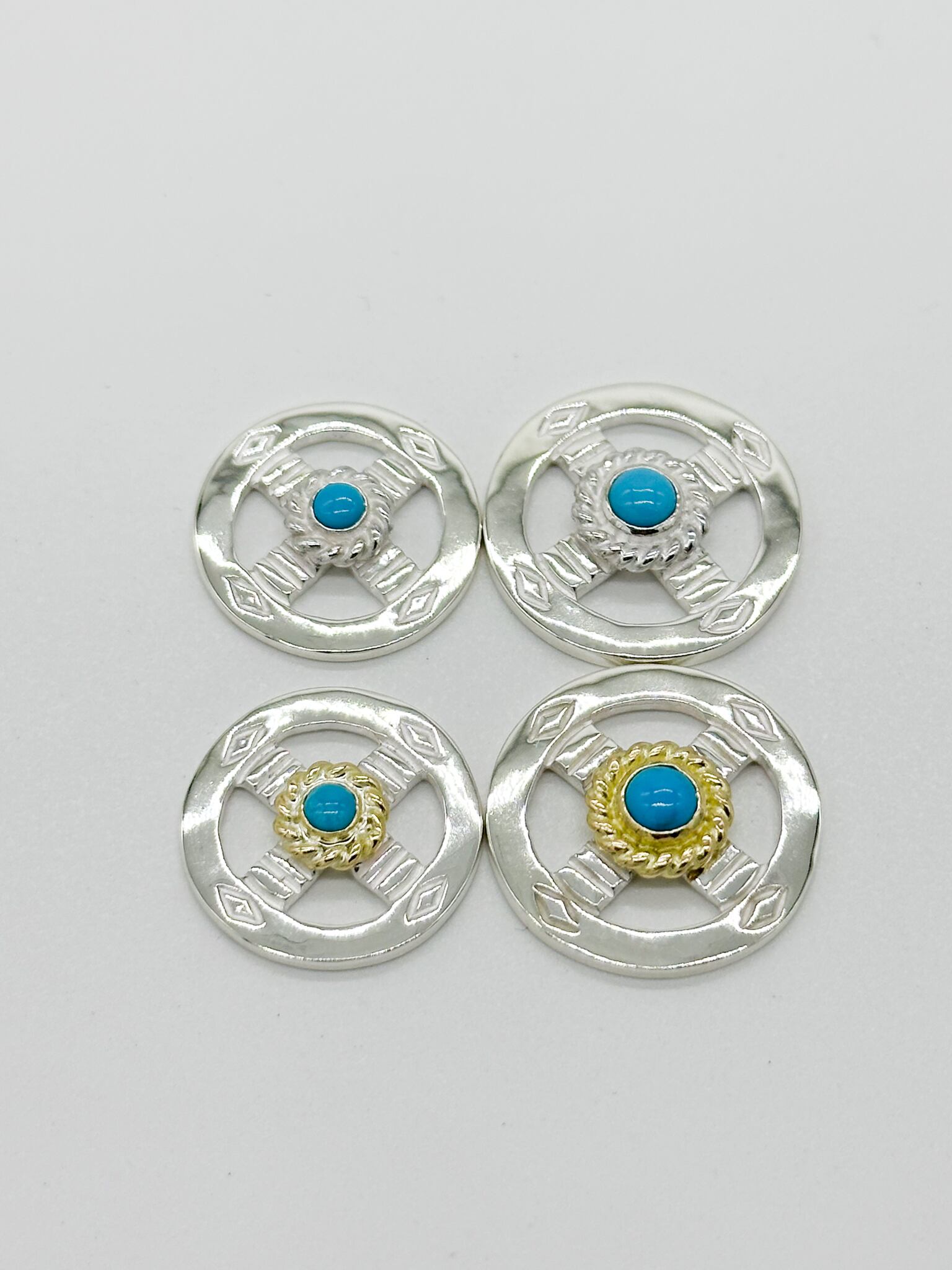 定番のメディスンホイールの上に銀縄目のターコイズが乗ったデザイン。