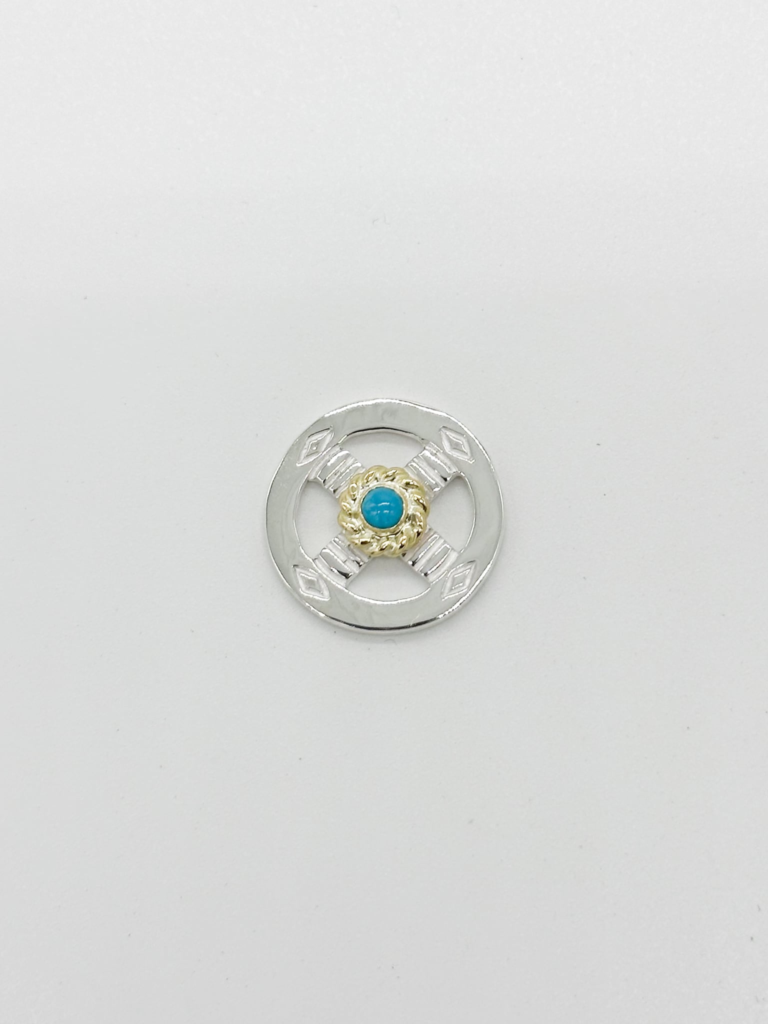 定番のメディスンホイールの上に金縄目のターコイズが乗ったデザイン。